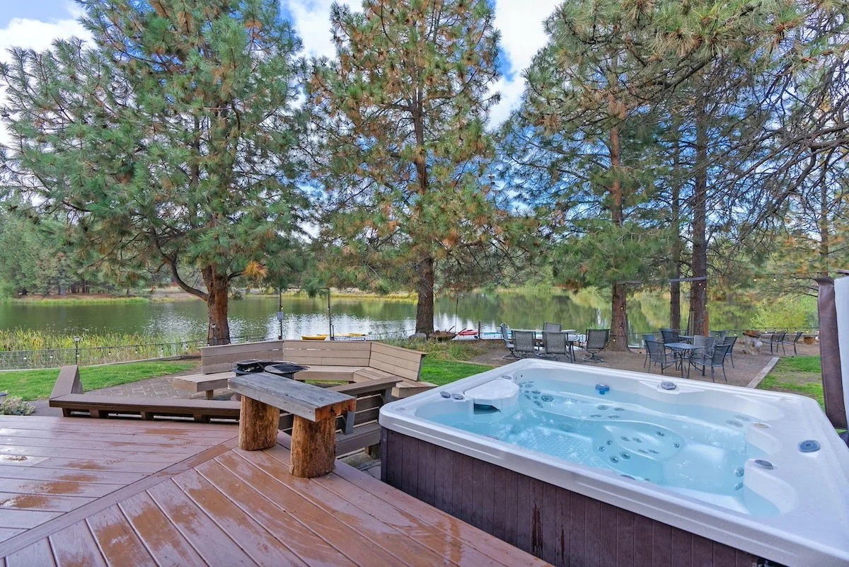 Risa Cabin is nestled in the woods just a few miles south of downtown Bend, Oregon. You will enjoy direct access to our private lake and plenty of open space to spend your time here however you wish. The 9-acre property boasts plentiful activities so you can enjoy your time in Central Oregon without even setting foot off the property if you want. Your group can walk around the lake, have breakfast with a view, kick back in the hot tub, play a round of disc golf, paddle around on the lake, or try your hand at fly fishing (catch and release style only, please). We have corn hole and a horse shoe pit, lots of boats, and in the summer time, our hammocks are out.
